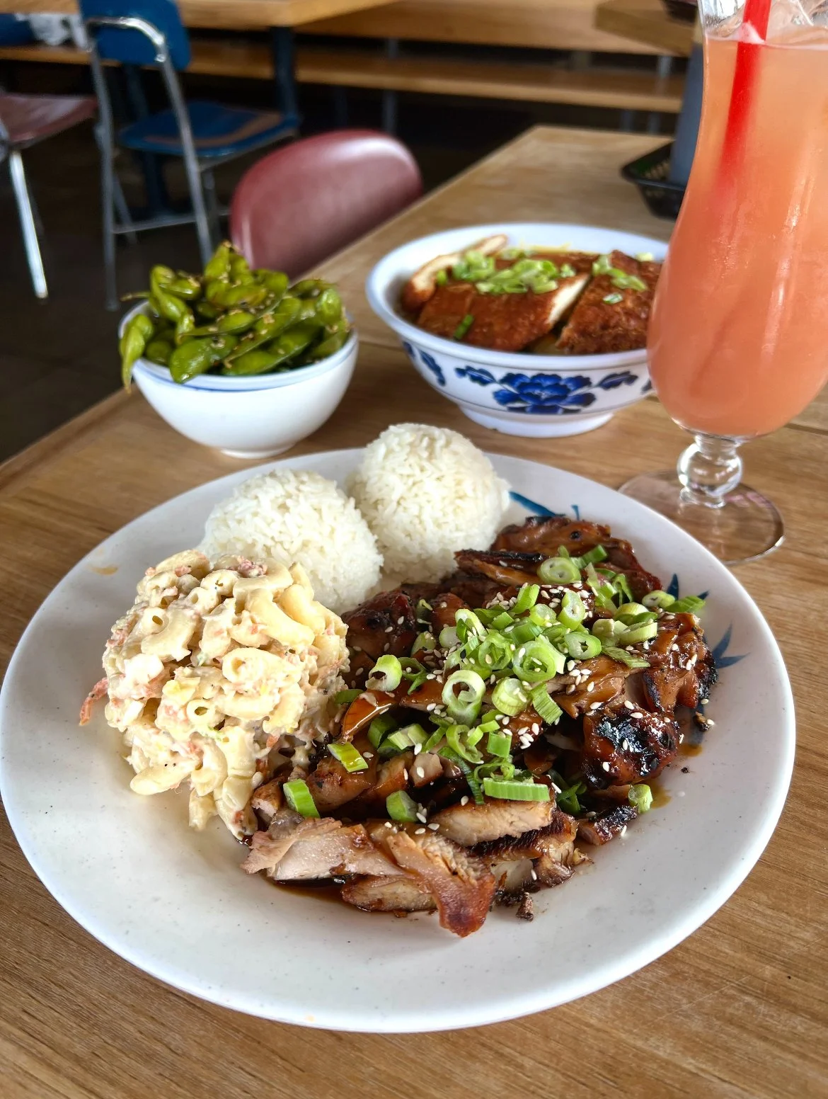 Our goal is to provide you with the finest and most delicious Hawaiian-Style food possible. We use only the highest quality products, including all natural meats, fresh vegetables, real Best Foods Mayonnaise and authentic Spam in our Musubi (accept no substitutions!)